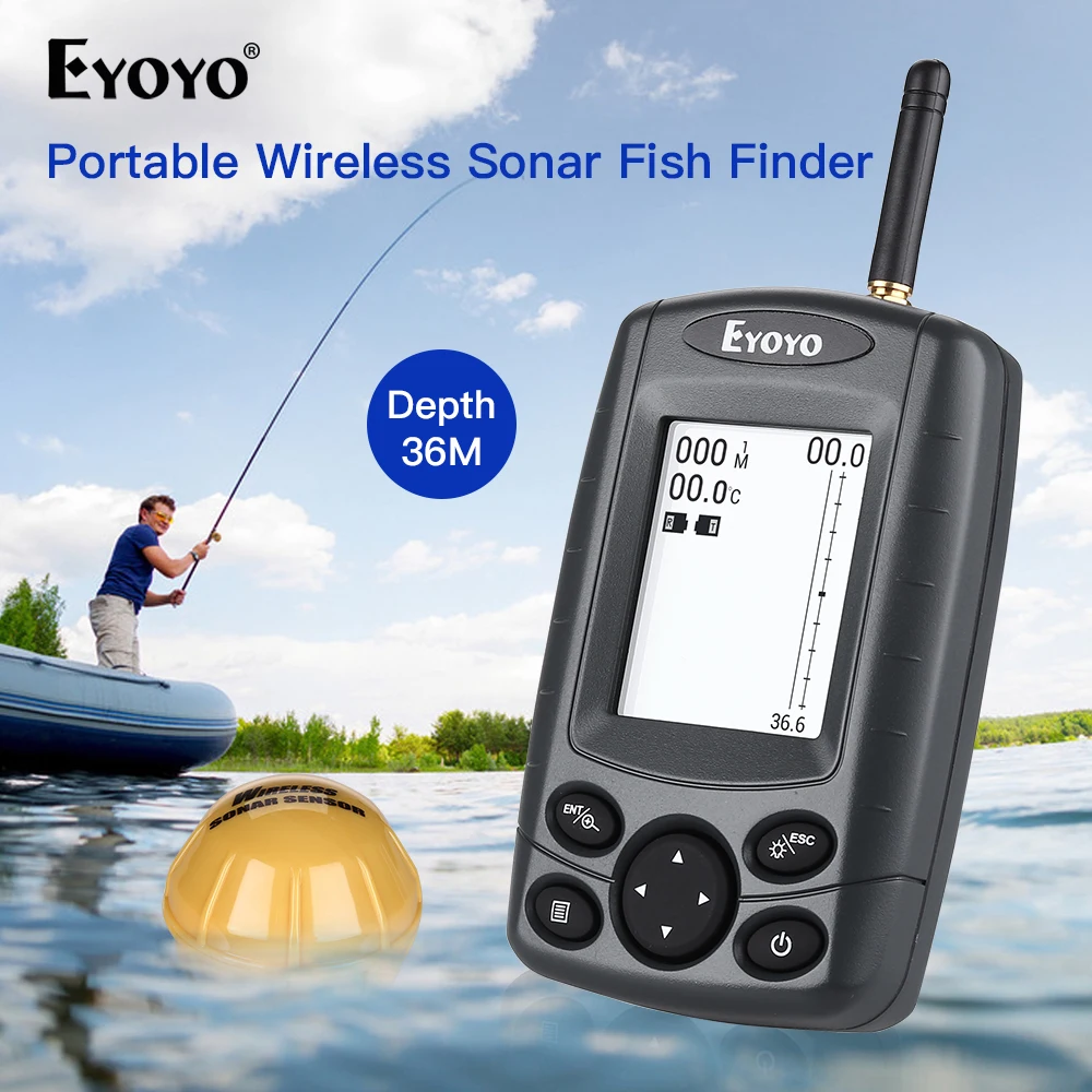 SALE Portable Fish Finder Outdoor Wireless 125KHz Sonar Sensor Fishing Finder Fish Depth Alarm Detector