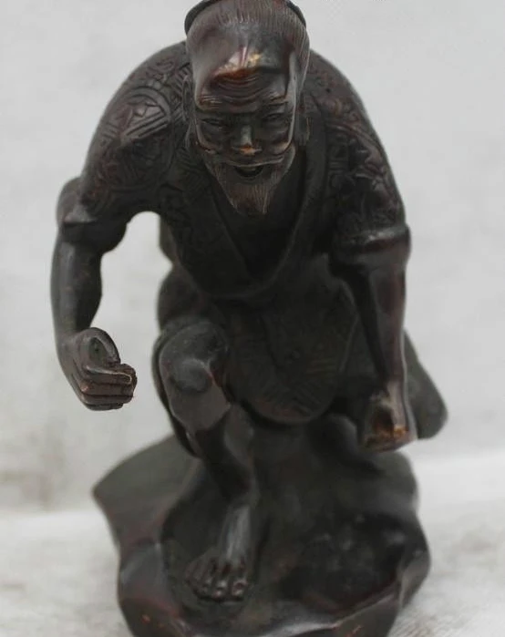 Big Deal 6"China Chinese Folk Bronze Lucky beautiful Lifelike fisherman go fishing Statue